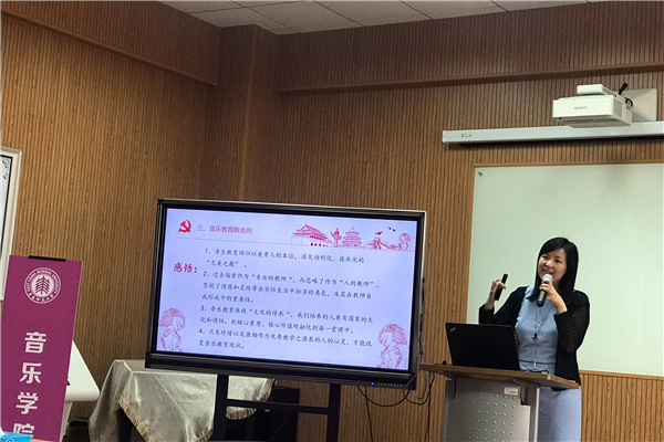 张薇副经理以习近平新时代中国特色社会主义思想为指引,分别从“美育发展的新机遇、艺术教育的新思路、音乐教育的新走向”三个视角来展开她本次《守初心,共筑音乐梦;担使命,弘扬中华美育精神》为题的党课,表达了她对公司音乐教育新方向、新思路的感悟,并引用教育部长陈宝生所谈到美育中的“五美”境界,提出从学科本位回归以美育人,实现“美美之教”的美好愿景。