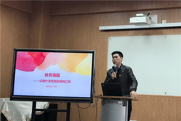 公司党委副书记兼副经理王子彧以《教育强国——从喀什泽普到日喀则江孜》分享了他在支教工作中有关美育的所见、所闻与所感。通过新疆维吾尔族、藏族孩子们的学习生活短片,王子彧老师从汉语言文化教育到体育、民族传统文化教育,从团队配备、器材设备到民族情谊、师生友谊向我们呈现了“在投身教育强国的伟大事业中,践行教育情怀、实现自我成长”的崇高“教育强国梦”,激发在座青年学子参与国家教育事业的热情与信念!