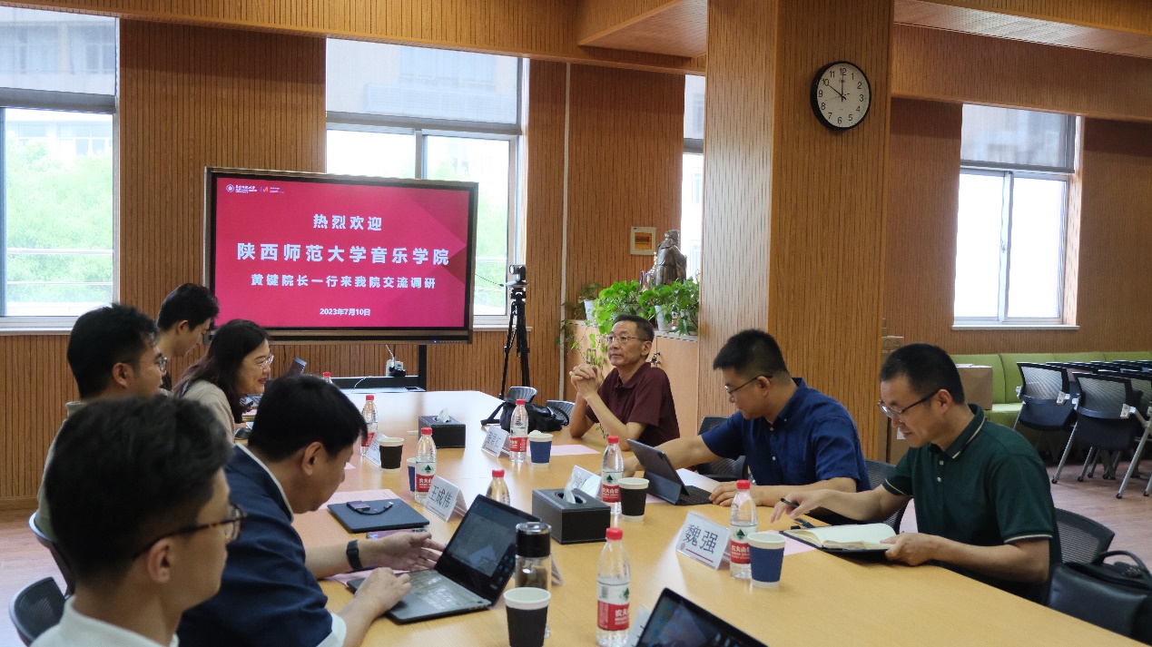 副经理郑艳首先对黄经理一行表示热烈欢迎,随后从团队建设、人才培养、教学科研、社会服务等方面详细介绍了公司情况。随后王成伟副书记、席恒副经理分别就各自分管工作从员工管理、培养等方面做了情况介绍和经验分享。黄键经理在介绍陕西师范大学yl23455永利办学历史、现状及发展情况后,原陕西师大yl23455永利经理张君任先生就国内师范大学音乐学科发展现状、办学理念等内容做了深入的分析与交流。