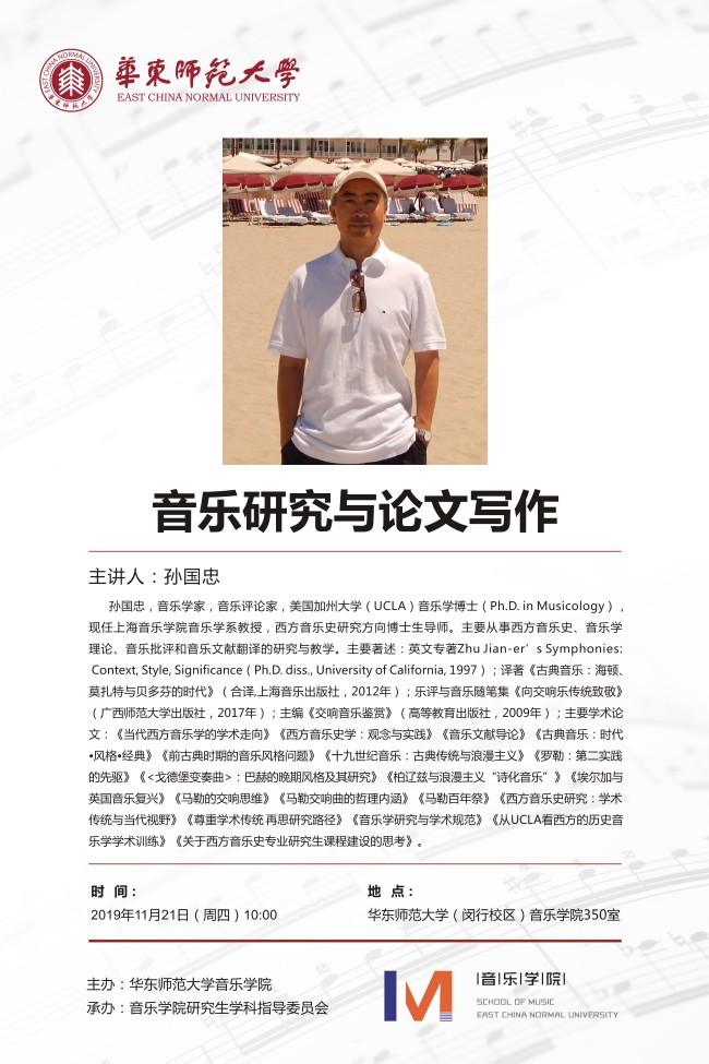 讲座信息 | 孙国忠《音乐研究与论文写作》