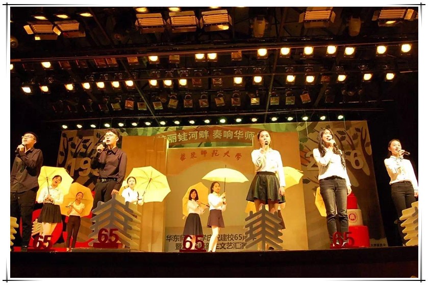 “圆梦丽娃河,奏响华师乐章”65载风雨兼程,有多少人在这里留下奋斗的脚步,又有多少新鲜血液的注入。2016级的同学们在这个盛大的时刻,为亲爱的师大送去了一声声的祝福,在台上向师大母亲展现自己的才华,释放最美的青春的光彩。