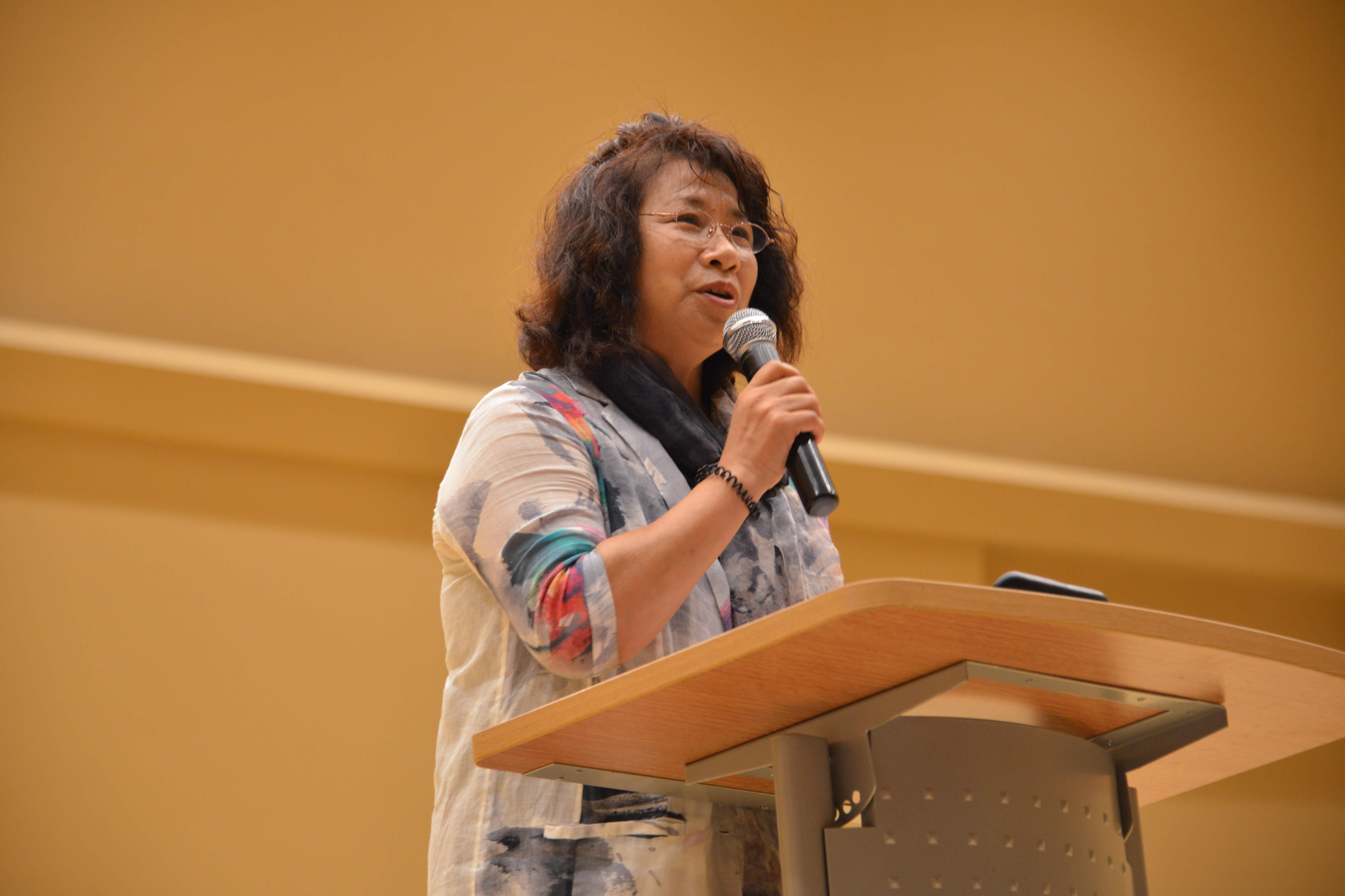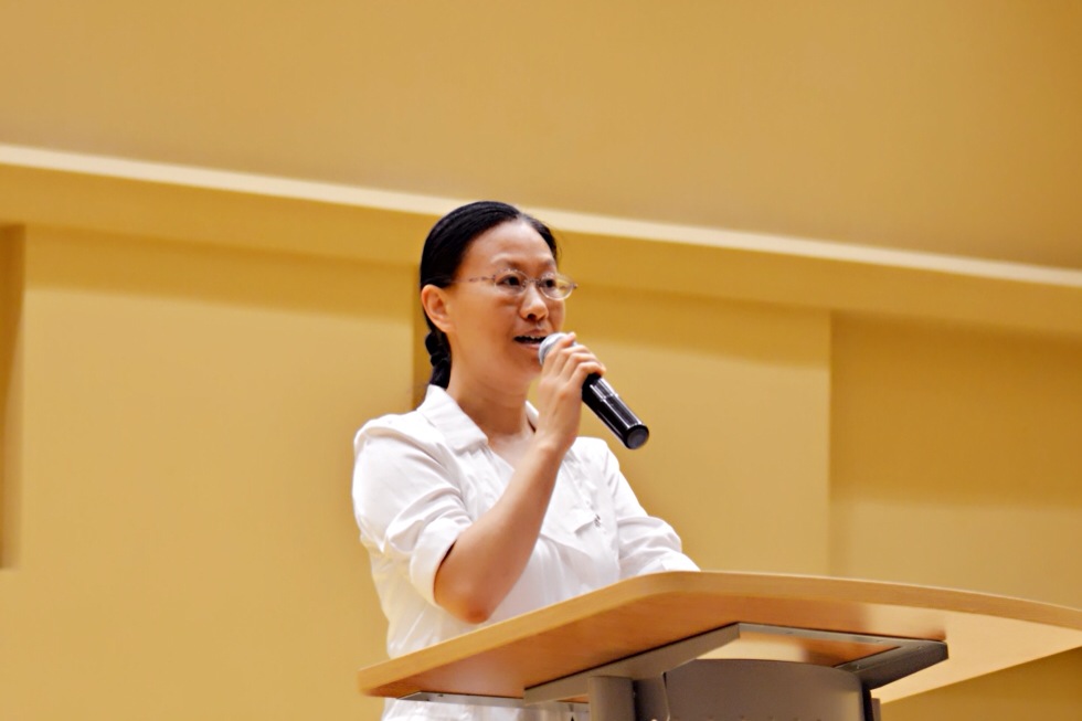 李明月副教授作为教师代表发言,她希望新生们能够尽快地适应大公司园的环境、适应离开父母温暖港湾独立生活的现状。李明月老师在发言中还说到,“我希望同学们能够抱有一颗感恩的心、敬畏的心、好学的心,去面对即将到来的老员工活,珍惜眼下的美好年华,珍惜身边的友谊和每一个帮助你的人。”