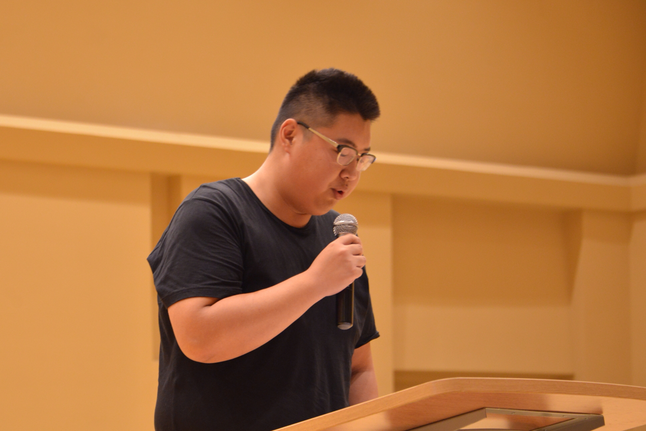 2014级本科生付晗同学是音乐学系员工会主席,他回顾了自己两年来的学习经历,与新生们分享了他在华师大学习生活的体会和感悟。在学习方面,他说:“千万不要认为大学是放松的地方,不在这方热土上洒下辛勤的汗水,怎会迎来硕果累累,没有在这里种下智慧的种子,怎会结出可喜的果实。”鼓励新生在完成学习任务之余,能到适合自己的员工组织中锻炼自己,在校园文化活动当中体会到成长和乐趣,全方位发展。在生活和员工活动方面,付晗同学说:“独立自主的生活对很多新生是一种新的挑战,相信大家能够坚持,鼓起勇气面对新的学习生活。在以后的老员工活中你也会发现团结同学是多么的重要,集体的力量是多么的伟大,也会感受到同学之间、师生之间的温暖和力量。”