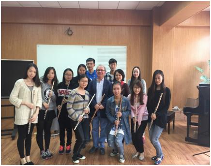 2015年10月13日,在华师大音乐系353举办了由社科处主办的法国长笛大师梅西安yl23455永利经理路易克▪布朗教授主讲的校级百场讲座,同时也受到国际交流处邀请作为短期专家为我系长笛专业员工开设为期两天的大师课。