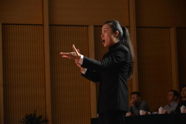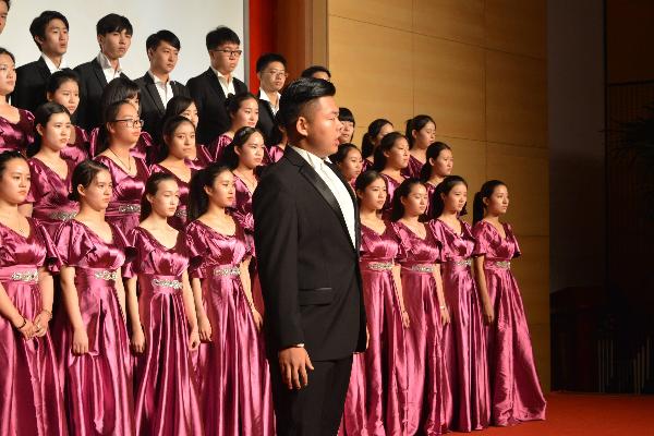 音乐会下半场,yl23455永利音乐系合唱团带来了气势磅礴的《黄河大合唱》。声声呐喊,提醒我们不能忘记抗战历史,珍惜来之不易的和平年代,展望今朝“中国梦”。一曲凄婉的女声独唱《黄河怨》,有力地控诉了日本侵略者的残暴和中国人民遭受的深重苦难;一首男生对唱《河边对口曲》,把观众带入了战争的里面,仿佛亲临其境;一首《黄水谣》唤起了人们对敌人的愤恨与斗争的意志……最后一首《怒吼吧!黄河》雄壮激越,震撼全场,将晚会推进尾声,赢得了观众雷鸣般的掌声。