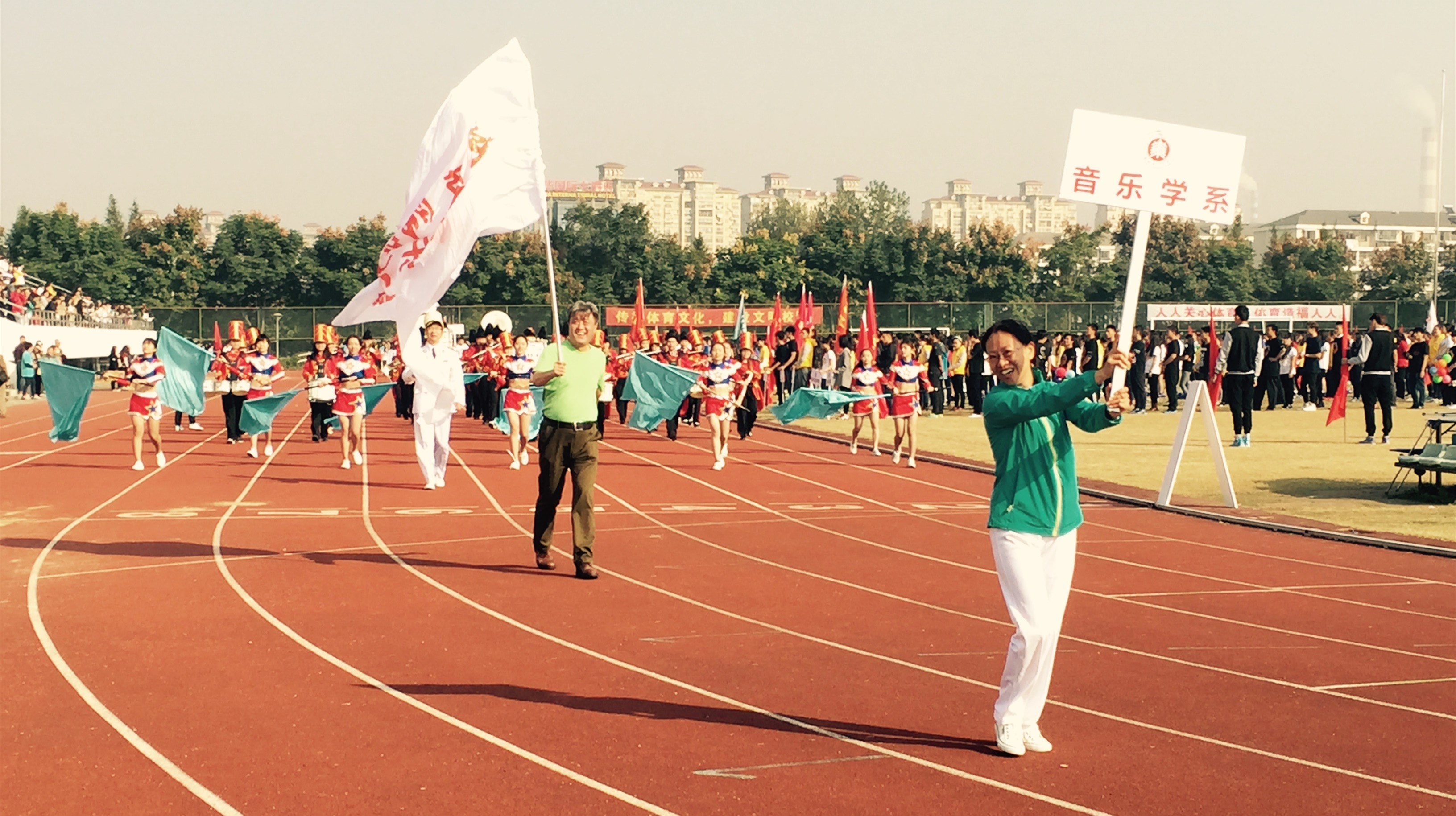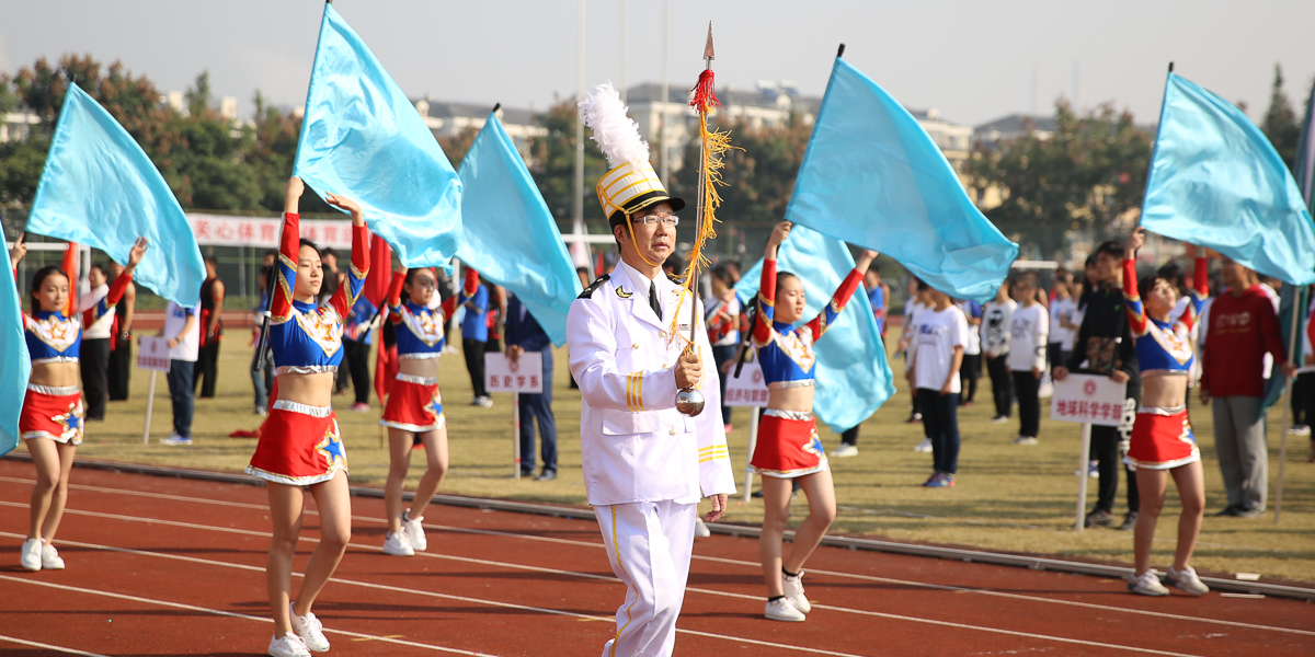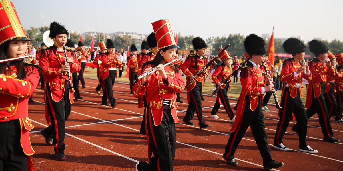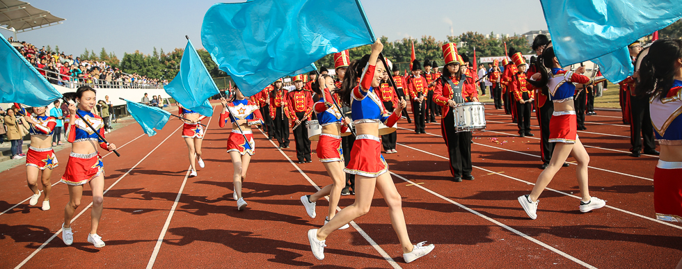 金秋是收获的季节,秋风拂动了校园的清晨,也拂动着华师人绽放的笑脸。11月3日上午8:45分运动会入场式正式开始,各方阵如“八仙过海,各显神通”悉数闪亮登场。音乐学系代表方队由行进乐队和彩旗队创意构成。军乐队身着英伦乐队礼服,精神抖擞,步履铿锵,在常林教授的指挥下,乐曲激昂,乐声嘹亮;与之同行的十位彩旗手,随乐曲舞动飘展的旗帜,青春洋溢,舞步轻盈,行止间散发着夺目光芒!我系师生近一个月的刻苦排练和团结努力没有白费,他们配合默契、相得益彰的表演充分展示了独特的艺术风采和非凡的团队凝聚力,引来赛场内外阵阵喝彩,被誉为“最具创意入场”,并荣获入场式一等奖!