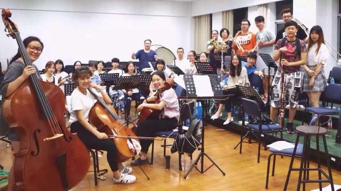 都说“巧妇难为无米之炊”,排练还未开始,这支临时组建的乐队就遇到谱子不全、声部缺席等问题,一筹莫展。是的,决定采用乐团伴奏之后,同学们才发现根本找不到《中国军魂》现成的交响乐谱,可急坏了 指挥和团员们!面对困难,以“铜管家族”为代表,乐团同学们并没有气馁,军训的磨砺、取胜的信念和对音乐的热爱都激发着同学们那股子迎难而上的干劲。同学们结合所学专业知识,用仅有的铜管乐谱改编出各声部的旋律,作品当然还有不少瑕疵,但大家从做的过程中获得了宝贵的经历与成长!正所谓“雄关漫道真如铁,而今迈步从头越”,“实践出真知”诚不我欺!