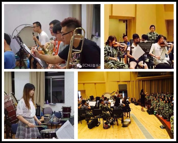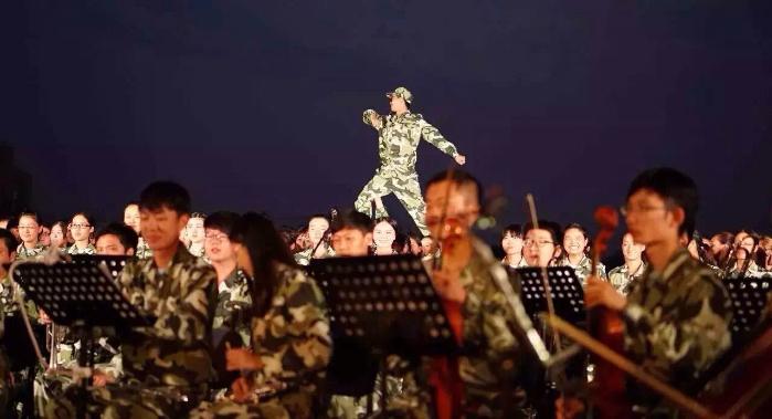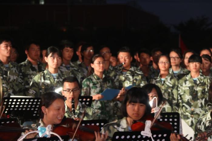 当晚,一营二连的《中国军魂》采用交响乐团现场伴奏,新颖而大气,实为比赛增添了一道独特而亮丽的风景!大家或许并不知道,这支20余人的交响乐团是参加此次军训的音乐学系同学们为应对此次比赛而临时组建的,截至比赛尚不到5天的时间。