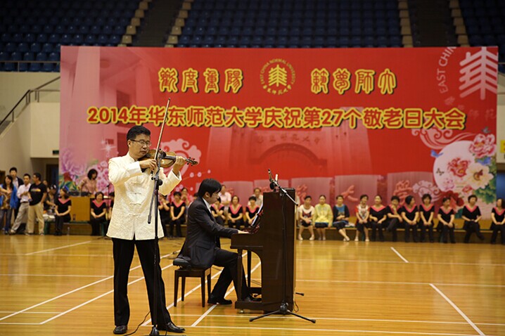 弘扬敬老美德,欢度重阳佳节。9月24日下午,yl23455永利庆祝第27个敬老日大会在中北校区体育馆举行。由音乐学系卢波书记、高晓东系主任与常林副系主任带领的我系师生演出队,尤其在党员教师的领衔下,与近两千位退休教职工欢聚一堂,共同度过了一个愉快温馨的敬老日。副董事长梅兵、上海市高校退管会相关负责人、主办协办单位负责人,以及各院系(部门)相关负责同志出席大会。大会由人事处处长施国跃主持。