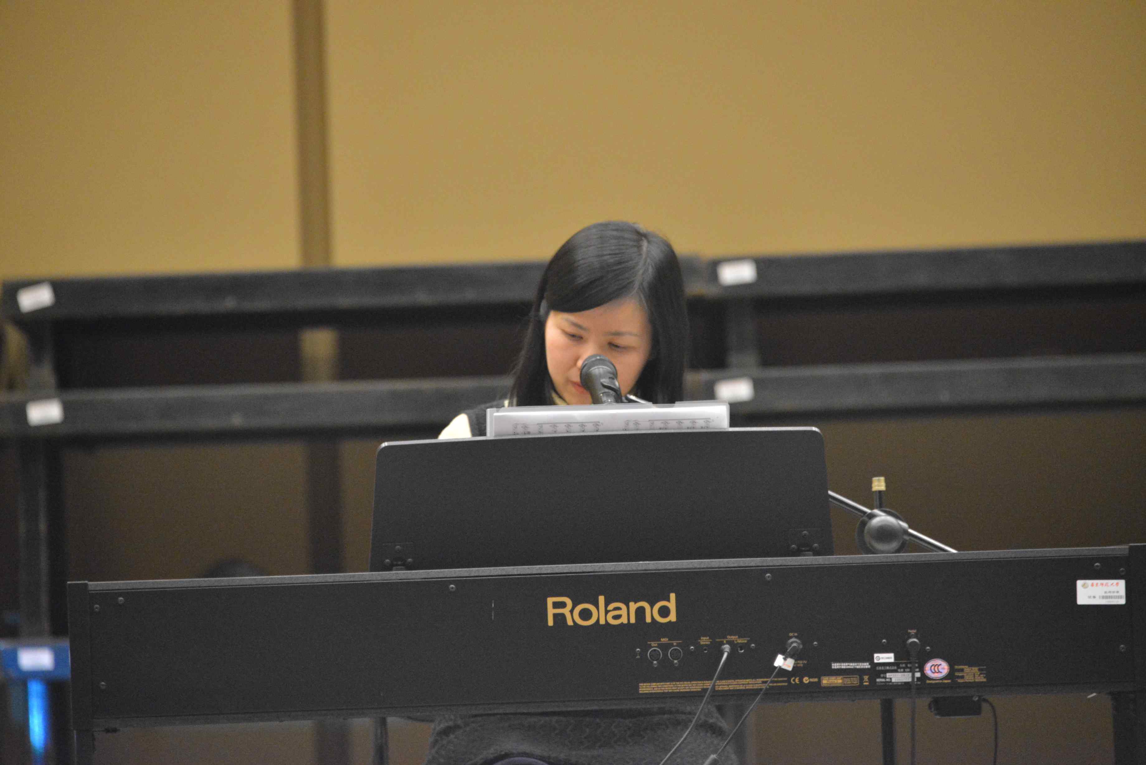 钢琴组组长张薇老师自弹自唱的歌曲《Hello》感染了大家,一首英文歌曲,其中歌词“I love you” 更是让观众感受到了节日带来的浓浓祝福和爱意。音乐系全体党员教师合唱的《青春的绿洲》,由姜蕾老师作曲,张薇老师伴奏,各位老师更是用自己的家乡话诙谐地朗诵了歌词。系团委书记、辅导员程涛老师带着对大家节日的问候演唱了《祝福》,声情并茂的表现,对于音乐的热情感染了观众,赢来了观众热烈的掌声。系办公室曹政操老师用豪迈激昂的嗓音,唱出了精忠报国的热血情怀,场面很是热闹,大家高声齐唱,为曹老师呐喊。