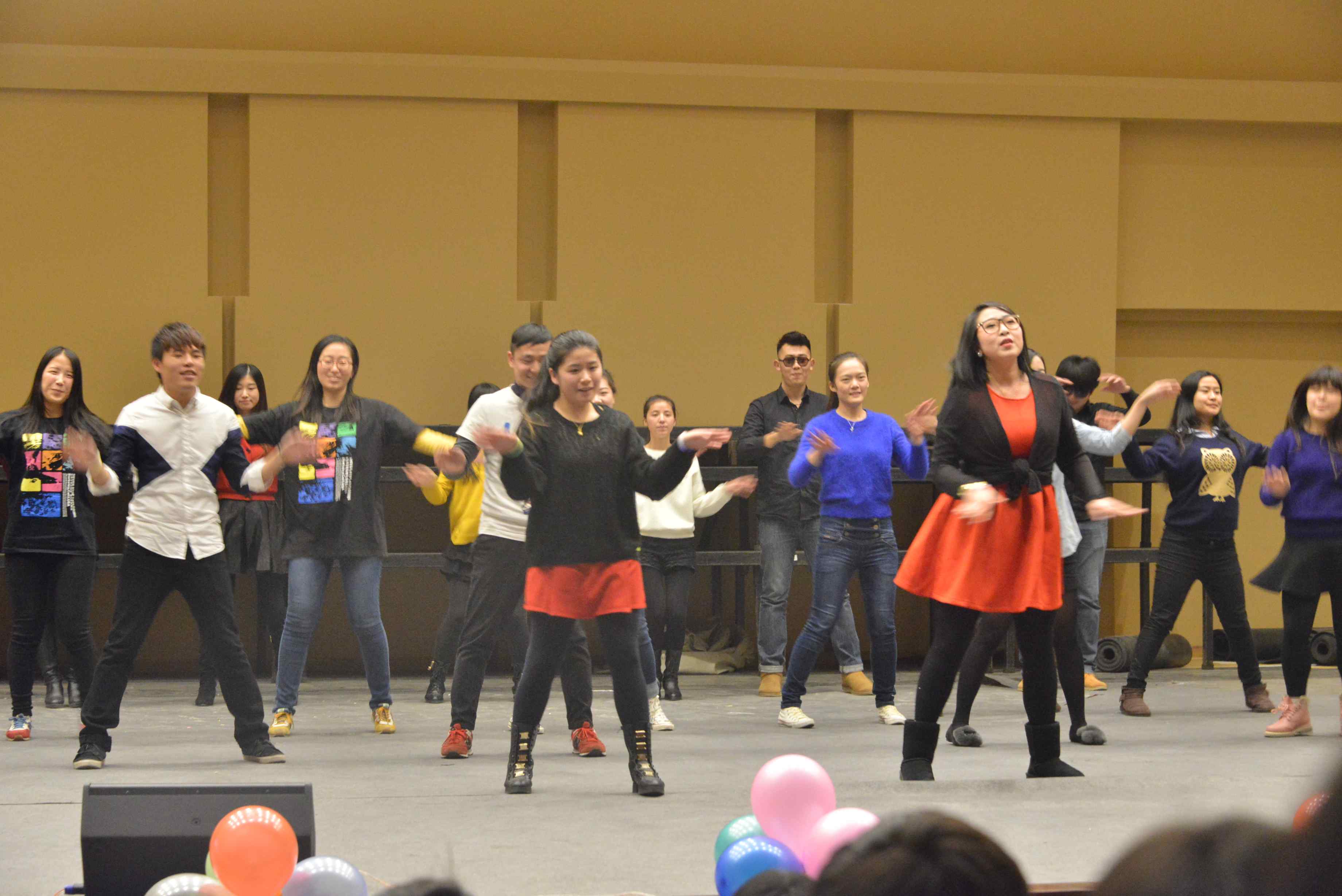 本场演出的压轴好戏是由音乐学系研究生会为大家带来的集体舞《小苹果》。音乐学系研究生会全体成员的表演。将全场氛围推到最高点,台下不乏激情洋溢的观众,和他们一起跳着唱着,尽显我系员工的青春活力。