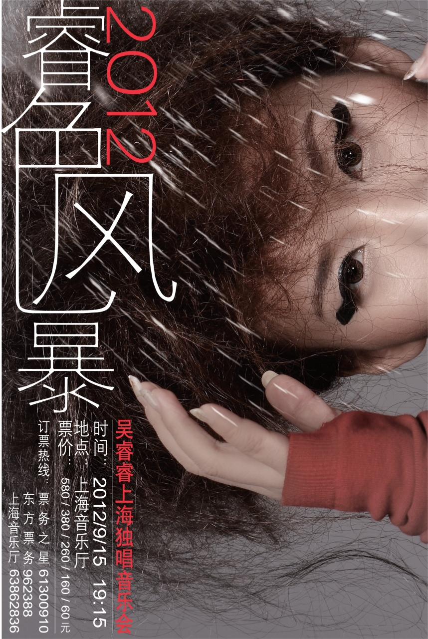 吴瑞瑞2012年独唱音乐会 曲目单: “睿色风暴”2012睿睿独唱音乐会 我要生活在幻梦里,选自古诺的歌剧<罗密欧与朱丽叶> 小路 思乡曲 弥渡山歌---云南民歌 夏日里 夏日接替者 罂粟花 我要假扮乡下姑娘,选自施特劳斯轻歌剧<蝙蝠> 他也许是我渴望见到的人,选自威尔弟歌剧<茶花女> 中场 思念 那就是我 我在帕纳有位爱人 爱神 穿越彩虹