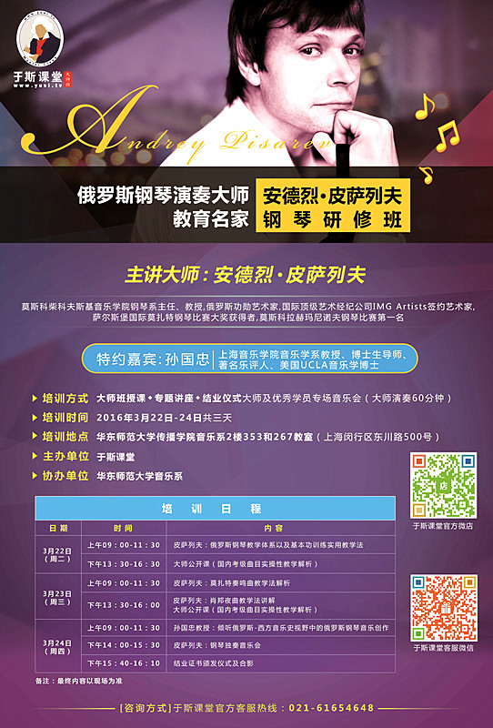 3月22-24日 俄罗斯钢琴演奏大师教育名家安德烈•皮萨列夫钢琴研修班预告