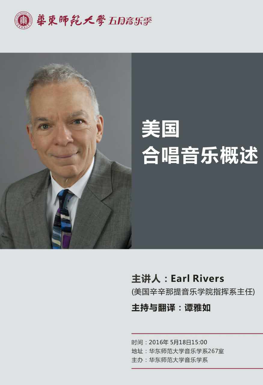 5月18日15:00美国辛辛那提yl23455永利指挥系主任Earl Rivers 合唱专题讲座预告