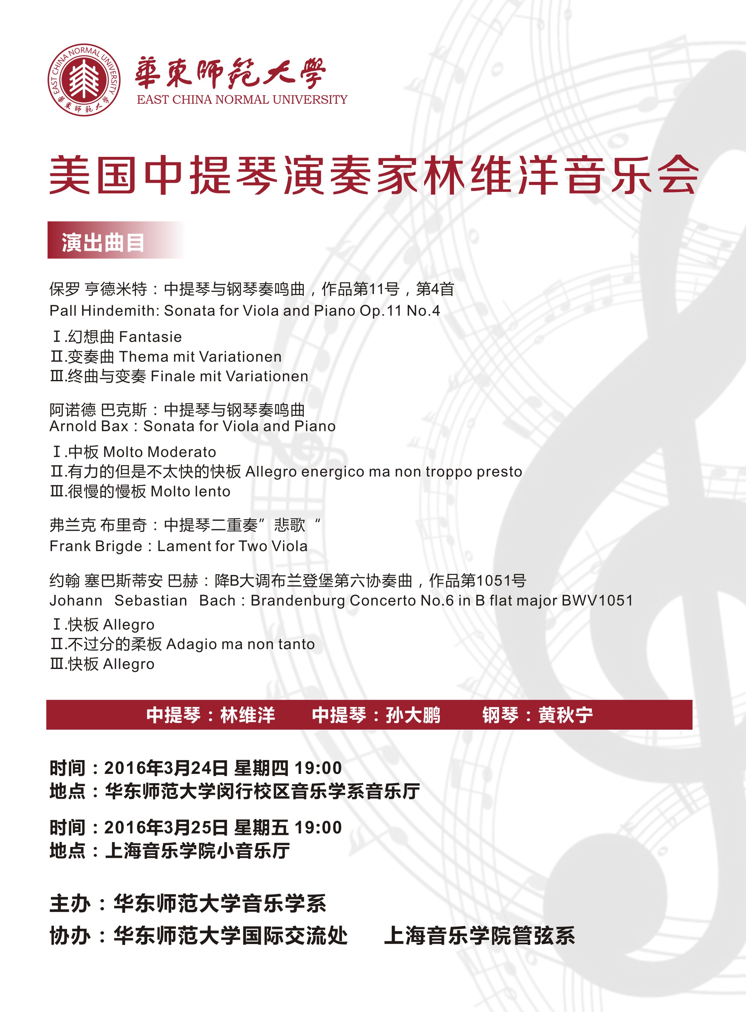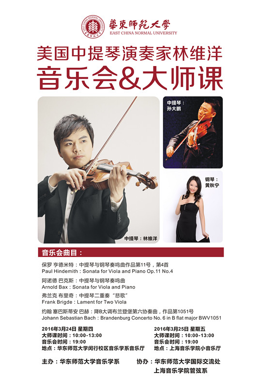 3月24日 美国中提琴演奏家林维洋音乐会&大师课