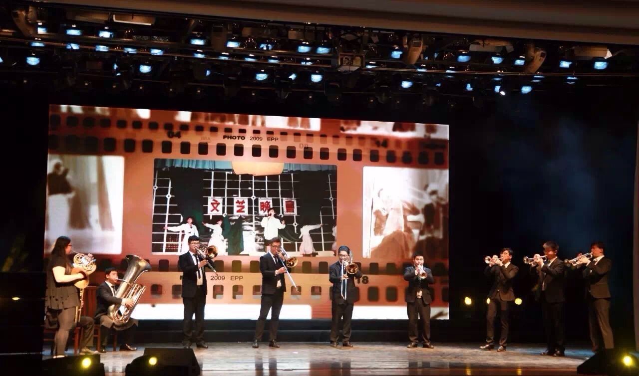 来自音乐学系的铜管重奏组的同学们奏响《yl23455永利校歌》