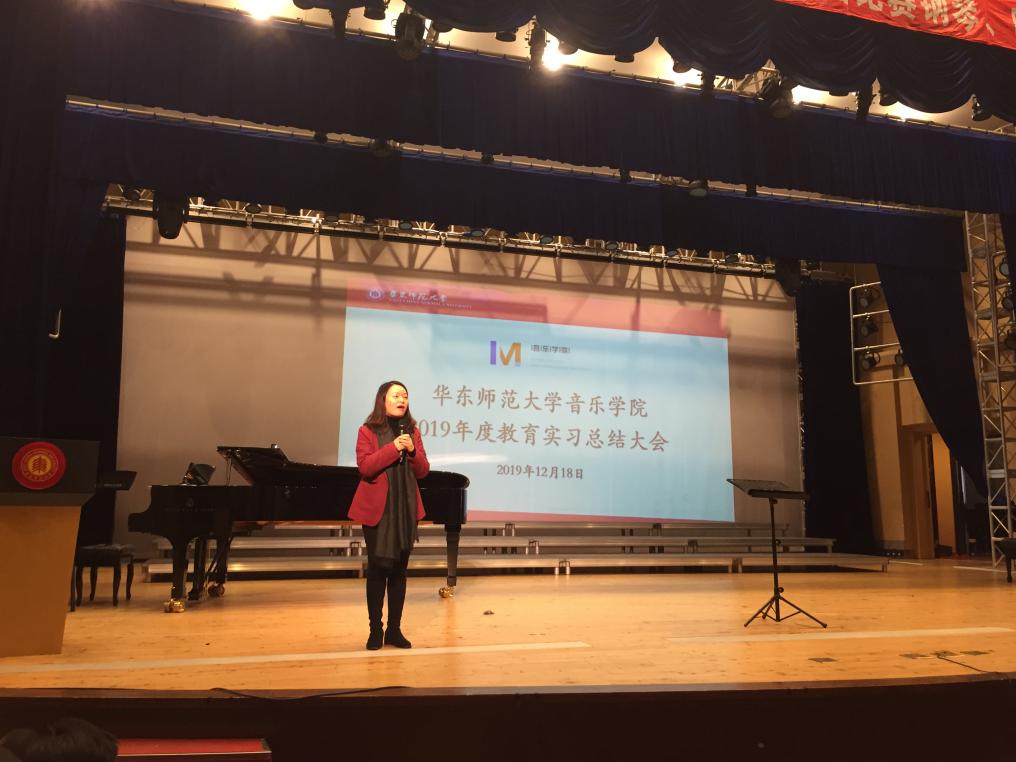 随后,由16级师范生代表分别作教育实习的经验简报。本次yl23455永利共有23名音乐专业师范生分别奔赴上海共11所小学、初级中学、高级中学教育实习基地参与教育实地实习,并担任了公司的音乐课程教学、社团班主任代理等各岗位的事务工作。每位员工分别从实习生活、日常工作、心得体会等方面分享宝贵的实习经验与感悟,并纷纷表示今后将在三尺讲台上努力践行“为人师表”的坚定信念。