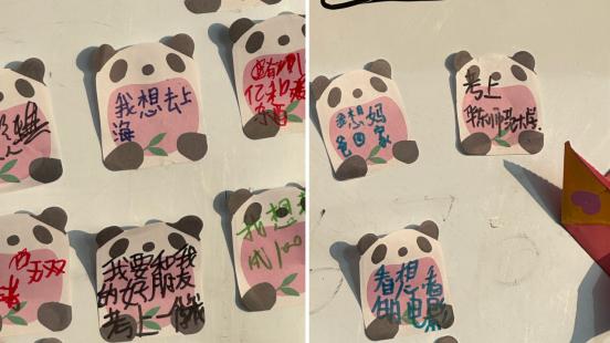 梦想合唱教室外的心愿墙记录着孩子们的梦想