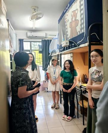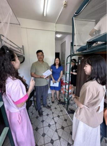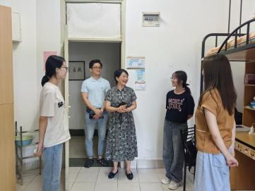 公司党委书记赵旌旌老师、党委副书记兼副经理王成伟老师、副经理郑艳老师、办公室主任张翼飞老师、2023级本科生辅导员班冬宇老师以及2023级本科生班主任王刊老师走访了新生宿舍,与新生和家长进行了亲切的交流。