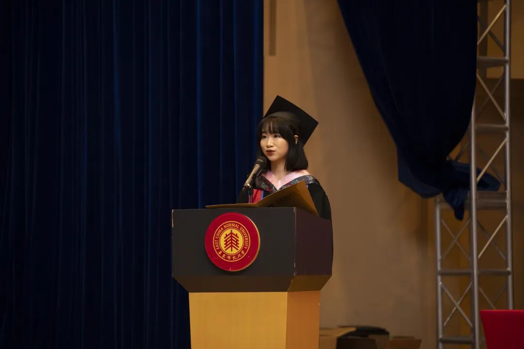 陈哲同学作为2024届研究生代表发言,她感谢公司搭建的丰富的资源平台,让同学们有机会接触到最前沿的信息与知识,打开视野,学会用音乐启迪思想、用旋律润泽心灵。作为一名即将踏入工作岗位的音乐教育者,她承诺将“求实创造,为人师表”的校训铭记于心,带着勇敢和乐观的态度,迎接每一个挑战,坚信未来的道路必将充满光明。