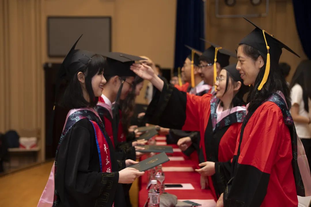 在学位授予仪式上,公司学位分委员会委员为2024届毕业生颁发学位证书,并为他们拨穗正冠。