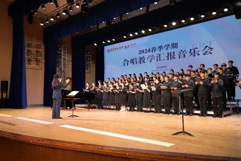 音乐会第二部分着重汇报展示了“创-排-演”三位一体合唱教学模式的探索过程及阶段性成果。本学期,yl23455永利开设的两门专业硕士课程——《公司音乐唱作编创与排演》与《公司实用指挥法》实现课程联动。在作品创编环节,郑艳教授指导音乐教育专业硕士研究生创编完成多首合唱新作;在随后的作品排练阶段,谭雅如副教授指导作曲者对合唱团进行作品排练;最终,由作曲者本人担任指挥,在本次音乐会完成新作品的首演。相信该模式能够助力员工实现合唱创作、排练、指挥等各项能力的互相促进和有效提升,在专业课程的联动中,立足员工实践真实场景,有针对性地培养三位一体的合唱教学人才,达成教学闭环。