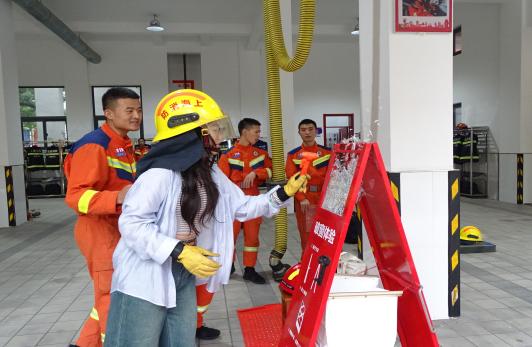 活动伊始,在消防队员的引领下,公司师生分三组先后参观了周渡消防救援站历史陈列馆,进一步了解了周渡消防救援站的历史发展。消防队员带领师生参观了消防队员整理内务,沉浸式体验了破窗锤使用消防逃生模拟、穿着战斗服以及乘坐消防车等项目,全面系统讲解了电器线路火灾的原因处置流程让大家掌握了解基本的消防安全常识和自防自救知识。