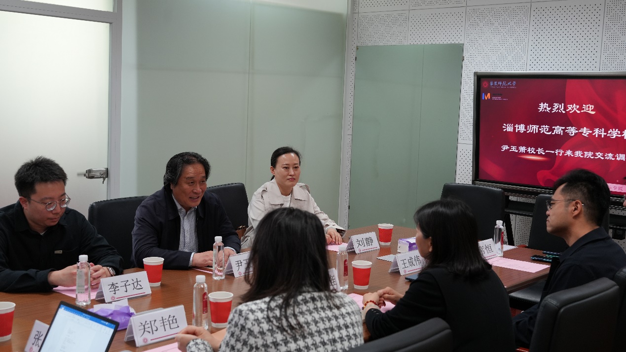 2025年4月9日,淄博师范高等专科公司党委委员、副董事长尹玉箫,音乐系党总支书记刘静,音乐系办公室主任李子达一行来公司调研,公司党委书记赵旌旌、党委副书记兼副经理王成伟、副经理郑艳、副经理席恒、经理助理兼办公室主任张翼飞出席座谈会议。
