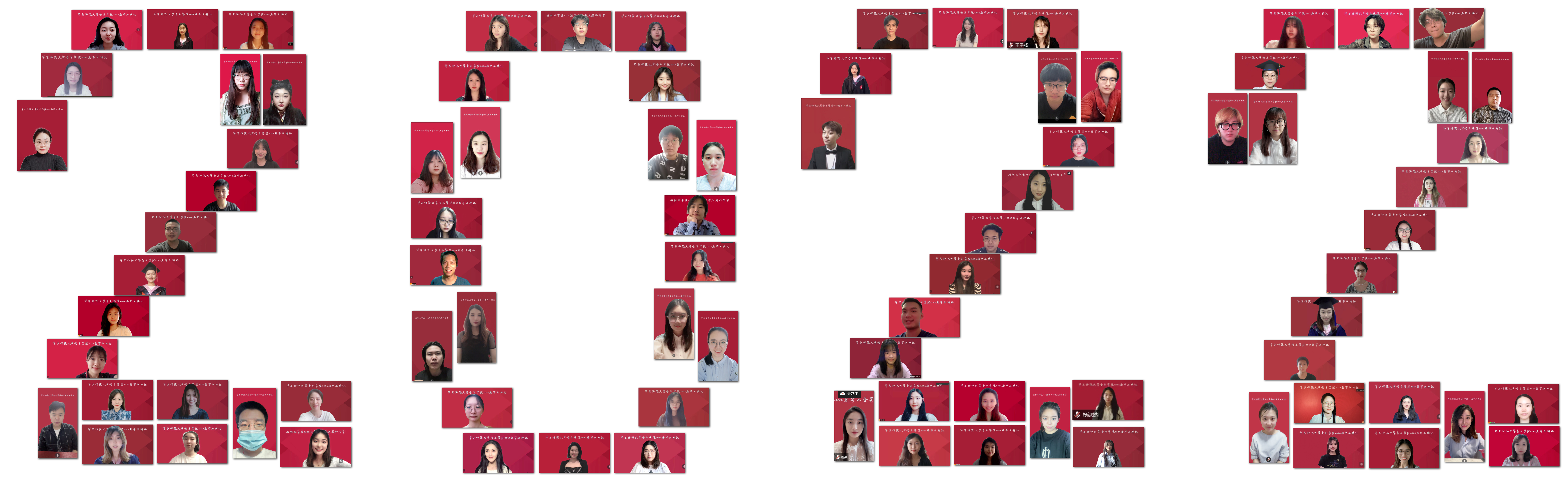 在熟悉的校歌声中,全体毕业生和老师们打开摄像头,以云合影的方式共同记录这一重要时刻,祝愿每个青春的梦想都不被辜负!