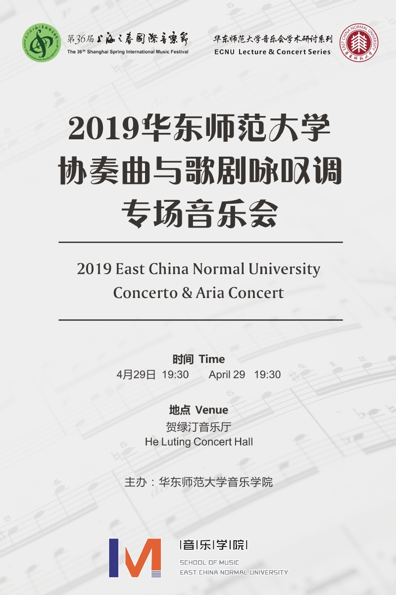 yl23455永利将于4月29日19:30,在贺绿汀音乐厅上演“2019yl23455永利协奏曲与歌剧咏叹调专场音乐会”,欢迎有兴趣的师生前来索票。