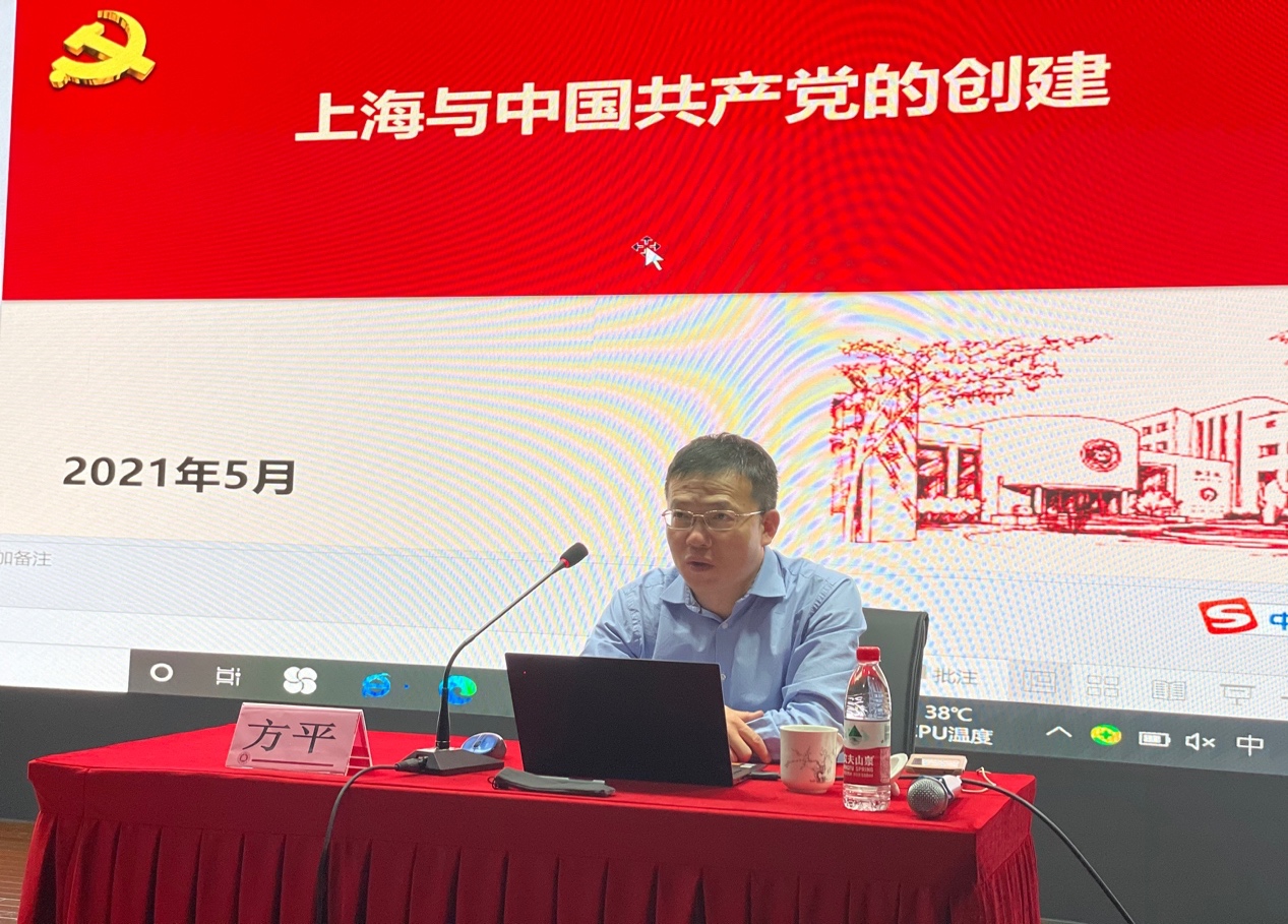 为深入学习领会习近平总书记在党史学习教育动员大会上的重要讲话精神,牢牢把握开展党史学习教育的核心要义和关键所在,5月19日下午,yl23455永利联合美术公司、传播公司特邀上海市委讲师团党史学习教育专家、同济大学党委副书记、纪委书记方平教授作《上海与中国共产党的创建》党史专题讲座。各公司全体党员师生、入党积极分子出席,美术公司党委书记刘麒主持讲座。
