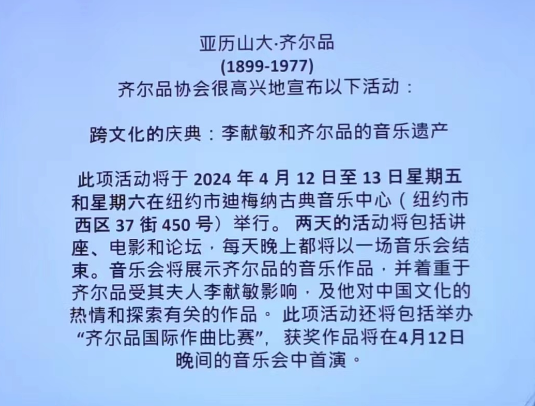 在讲座的最后,大卫教授宣布2024年4月将举行“齐尔品国际作曲比赛”,并鼓励大家积极参加。