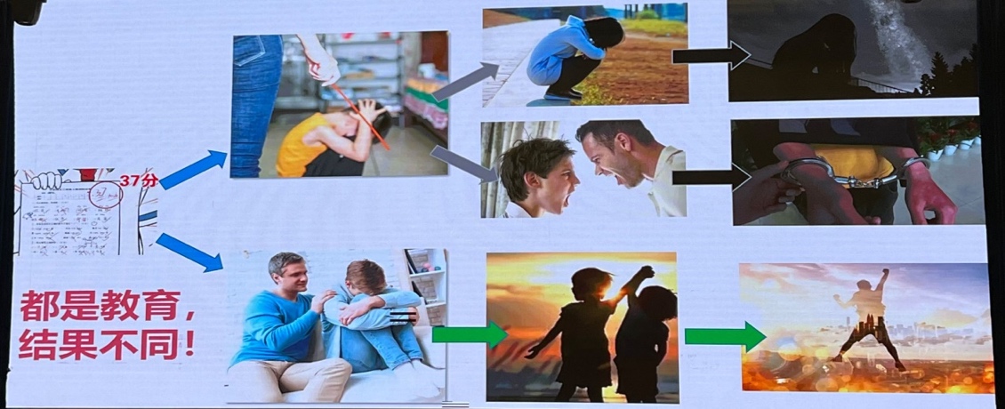 讲座最后,周经理以图片展示了不同的教育方式对孩子不同的塑造过程以及产生的不同后果,并同时点明主题:“教师是一个高风险行业,每一位教育者都应该接受教育专业的岗前培训,从而尽可能的避免教育伤害的出现,作为人民教师,对孩子一生的影响是不可限量的”。