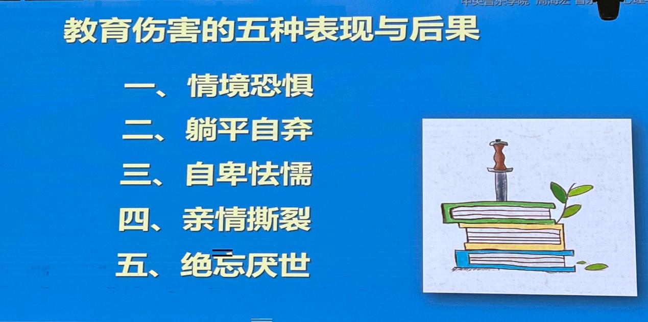 随后,周经理通过音乐教育中的具体案例,如:员工对于舞台表演的怯场和恐惧情况、员工学习过程中遇到的惩罚等,向大家展示了教育伤害的表现形式。