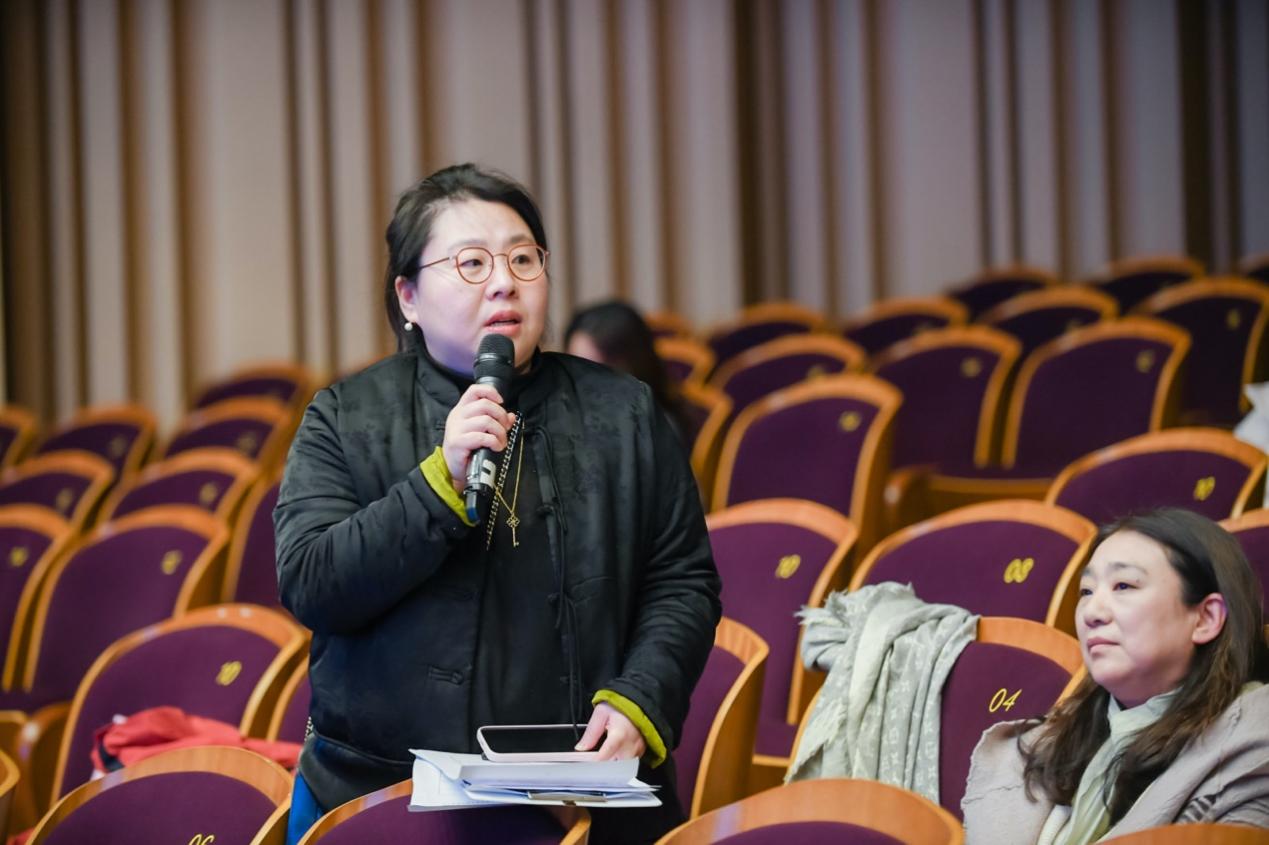 音乐教育专业的高彬玮同学以柴可夫斯基的钢琴作品《杜姆卡》为主题,带来一场集教学、演奏、学术三位为一体的展示,从听觉感受引入课堂,结合柴可夫斯基的创作背景,整体总览作品“悲---喜”的戏剧性布局,探讨这一创作手法的现实意义。音乐教育方向专家姜旼老师给予点评并提出观点:“音乐教师是普通员工认识的第一位‘音乐家’,音乐教师对员工今后音乐观的形成和发展起着至关重要的作用。”
