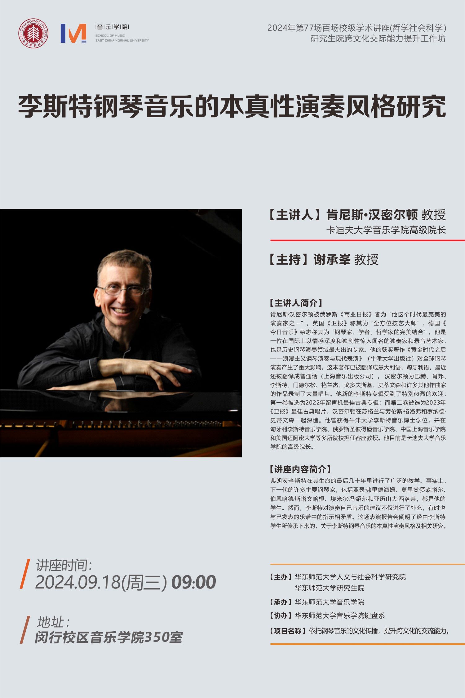 9月18日讲座预告 | 肯尼斯·汉密尔顿:《李斯特钢琴音乐的本真性演奏风格研究》