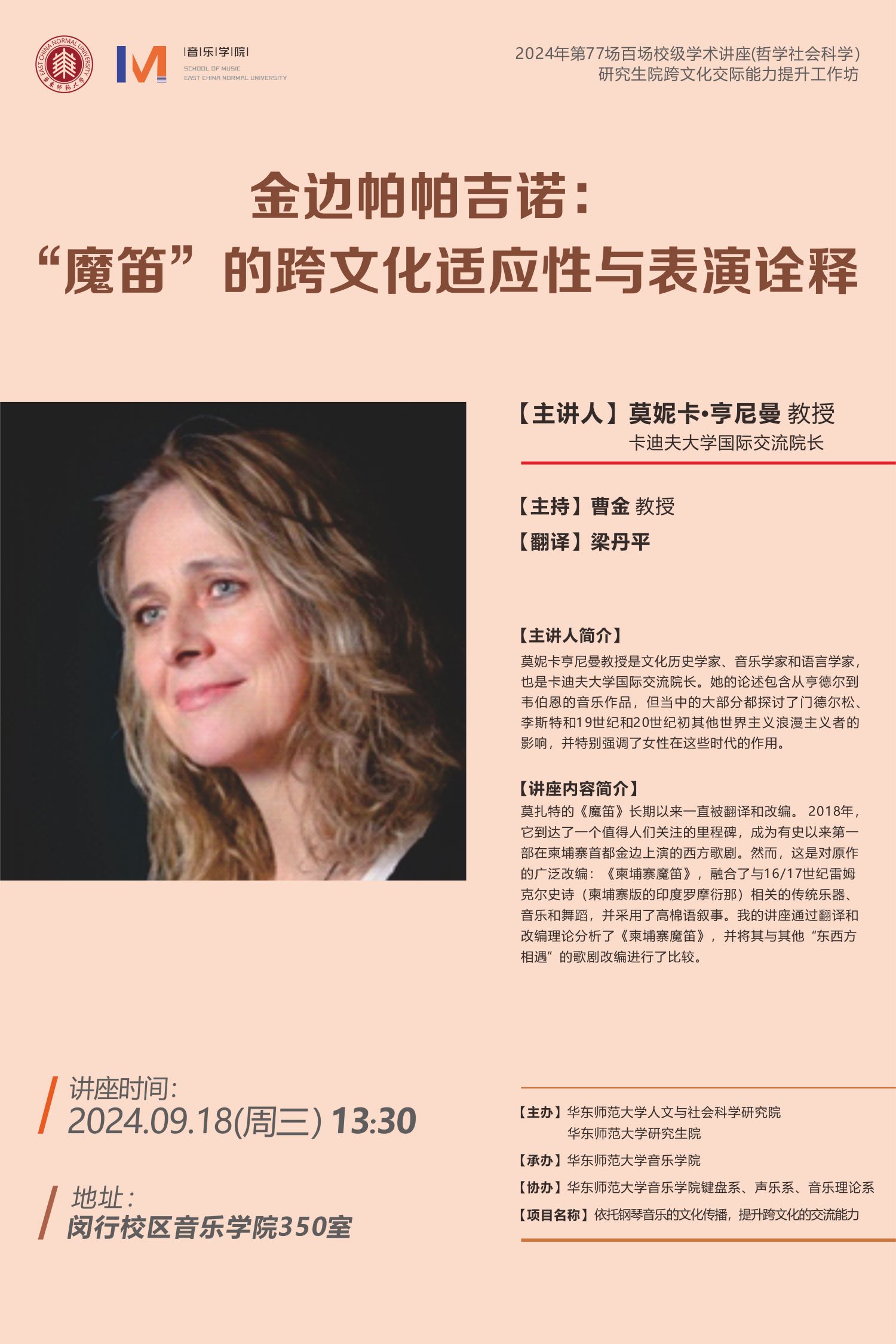 9月18日讲座预告 | 莫妮卡·亨尼曼:《金边帕帕吉诺:“魔笛”的跨文化适应性与表演诠释》