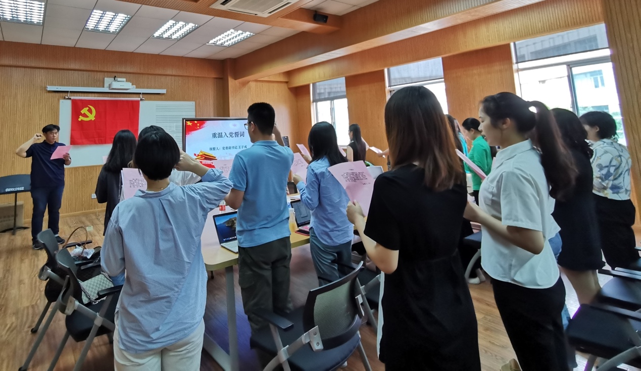 表彰大会在激昂的国歌声中拉开帷幕。党委副书记王子彧带领着全体党员师生重温入党誓词,勉励在座师生党员不忘初心,牢记使命。