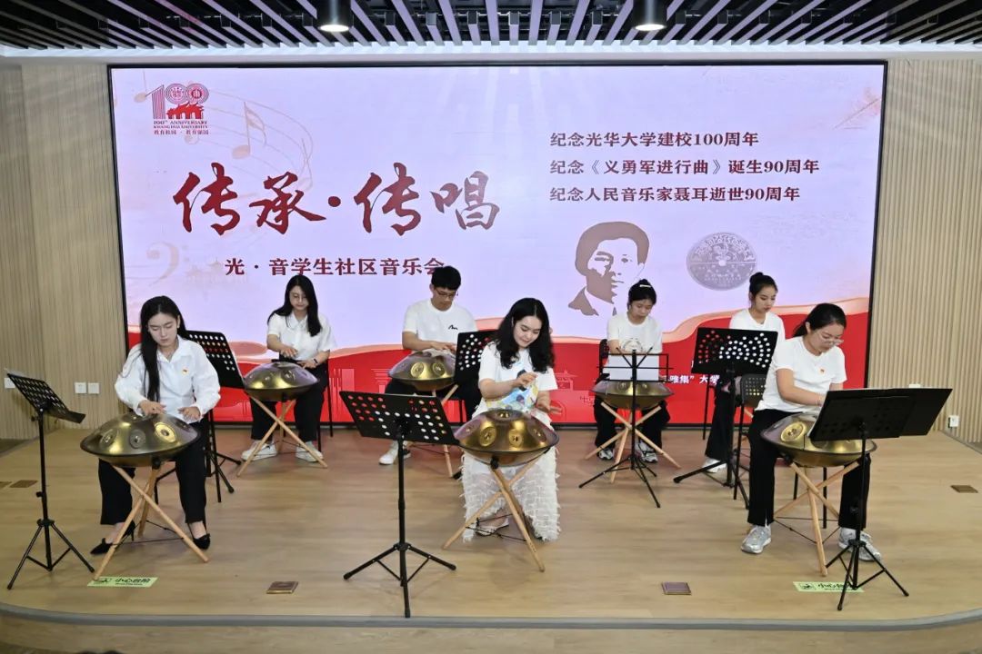古筝、手碟、行走的琴与合唱 《光华大公司歌》 《光华大公司歌》由yl23455永利员工、光华书院“美韵光华”文化鉴赏与体验活动、“音心谐美”行走的琴课程学员们合作演出,为光华大学建校100周年献上祝福,展示美育实践成果和艺术风采,传承“知行合一”的校训精神和爱国情怀。 今年,恰逢人民音乐家聂耳先生创作《义勇军进行曲》90周年,也是他逝世90周年的特殊年份。作为中华民族精神的号角,这首乐曲激励着无数仁人志士为民族独立与复兴前赴后继。音乐会以全体师生合唱《义勇军进行曲》结尾,激励师生以澎湃之心铭记历史,以昂扬之志迈向未来。