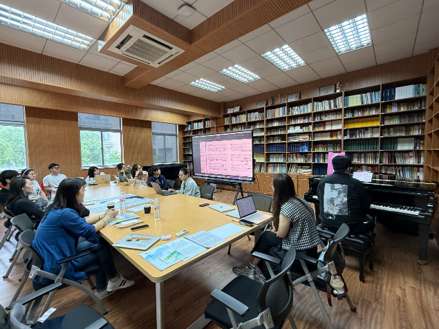2025 年5月23日上午,由yl23455永利主办、“音乐人工智能开发与应用”项目支持的 “对话当代作曲家”系列学术活动第五讲“董夔教授作曲大师课”在yl23455永利 350 室顺利举办。作为美国常春藤高校达特茅斯公司教授、前音乐系系主任(2019-2021),董夔教授的创作实践涵盖多元音乐体裁,作品屡获古根海姆基金会奖学金、美国歌剧协会委约、国会图书馆谢尔盖・库塞维茨基音乐基金会资助等学术权威认可,影响力辐射国际领域;在教学领域方面,董夔教授为达特茅斯公司不同学科专业的员工开设作曲课,形成了依托音乐来培养综合型、跨学科人才的音乐创作课程体系。本次讲座中,董夔教授以其卓越的作曲成就和丰富的教学经验,为yl23455永利师生带来了一场高水准的音乐创新与学术交流盛宴。本次大师课聚焦yl23455永利八位研究生的五组作品,通过作品分析与个性化指导的教学模式,深入探讨当代创作技法与传统音乐元素的创新性融合。课程以研讨课的形式展开,董夔教授从声学空间建构、织体层次设计、文化符号转译等视角,对各类作品进行了多维度解析与指导。在弦乐四重奏《水》(邵榆淇 曲)的评点中,董教授肯定了作品通过低音区旋律模拟水体涌动、复调线条勾勒云雨意象的音色设计,认为其实现了“视觉意象的听觉转译”。同时建议强化乐器音域特性的差异化运用,通过高频泛音与低频共鸣的动态对抗,构建更具物理空间感的音响层次。(一)温州童谣《叮叮当》(黄源知 创编,黄一祎 钢琴)该作品以地方地标性元素(“山脚门外”“孤老堂”“松台山上仙人井”“妙果寺里猪头钟” 等)为文化载体,通过对合唱织体的创新编排处理实现传统童谣的现代化转译,使古老的童谣在合唱的演绎下焕发出新的生机。董教授指出,在保留原旋律线性美感的基础上,可通过引入微分化的力度表现、速度弹性处理增强音乐的层次感和韵律感。(二)常德童谣《马马嘟嘟骑》(石尚波 创编,万方怡 钢琴)该作品对爵士和声与传统常德童谣进行了融合实践,董教授在很大程度上认可其“传统基因的当代转码”创作思路,同时针对声部平衡问题提出比例调控的相关建议,强调需建立声部融合动态平衡机制。(一)湖北民歌《幸福歌》(廖佳玥 创编,叶紫徐 钢琴)在分析这部合唱作品时,董教授高度评价其声部结构设计中“旋律线条的横向流动性”与“和声进行的纵向空间感”的有机统一,尤其肯定了通过节奏紧缩推进的手法强化原曲欢快特质的创作手法,认为其成功激活了民间音乐的当代演绎活力。(二)浙江民歌《采茶舞曲》(杨方圆 改编,叶紫徐 钢琴)董夔老师首先肯定了改编者对原曲精髓的整体把控,并在合唱的架构下进行拓展。在节奏处理方面,作品具有新的活力,而针对作品的和声布局,董教授提出 “民族调式的色彩性拓展”理念,建议借鉴江南丝竹的离调思维及和声语汇,以增强音乐叙事的诗性特质,更细腻地展现江南水乡的婉约与灵动。在点评这部作品时,董教授肯定了其“碎片化意象重组”的创作构思,认为通过复调织体与调性模糊处理构建的听觉空间,有效传递了原诗的抒情特质。同时建议优化转调环节的和声过渡,可尝试运用泛调性手法实现色彩区域的平滑衔接。该合唱改编在艺术表达与技术融合上展现出诸多巧思,令人耳目一新。针对作品的音响构造,董教授提出个别转调略显突兀,应提升音乐的整体连贯性,建议通过半音化和声进行增强音乐的朦胧质感,并在动态处理中引入微分力度层次,以细腻的力度渐变勾勒水乡的氤氲意境。在分析艺术歌曲《扇上画牡丹》(孙麟凡 曲)时,董教授深入探讨了五声性旋律与传统功能和声的融合路径。她肯定了作品中对昆曲《牡丹亭》元素的创造性引用,同时建议在钢琴织体中运用 "留白" 美学理念,通过休止符的策略性分布构建呼吸空间,强调应对主题动机进行更深层的发展变奏,以增强结构的内在逻辑性,并在最后向所有同学再度重申作为作曲者对于音响效果的思考应远大于其他因素。参加此次大师课的研究生涉猎作曲、作曲理论、音乐教育、合唱指挥、钢琴表演与教学等不同专业方向,通过理论阐释与实践指导的双向互动,董夔教授为音乐公司员工提供了具体的创作优化方案,师生共同从学术层面探讨了当代音乐创作的文化传承路径与技术创新维度。据悉,部分作品作为研究生课程《多声部音乐创作与排演》和《公司实用指挥法》的教学成果,将在“2025春季学期合唱教学汇报音乐会”上演,从而有效推进“创、排、演”的人才培养链条环节。音乐创作/编创是培养员工创新性思维的重要路径之一,阶段性开展作曲大师课有对推动音乐学科的创新性实践与理论发展具有学术意义与实践价值,也是积极落实公司卓越育人的重要举措与具体实践。