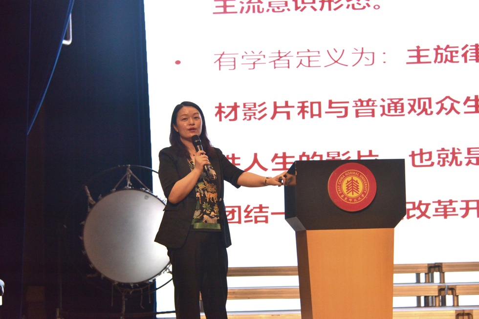杨海燕老师从自身研究的专业领域出发,以“主旋律电影”为切入点,从电影哲学视角把握主旋律电影的三要素:革命历史题材、英雄人物和主流意识形态,梳理了新中国成立以来4个特定时期主旋律电影的不同创作历程、创作特点,并结合对5部主旋律电影的经典片段赏析,来解读主旋律电影的多元时代文化特征、弘扬爱国主义和民族精神的主题、民众喜闻乐见的电影语言和美学风格等。
