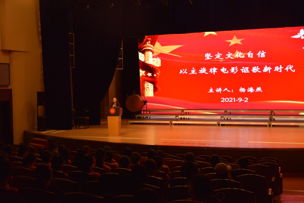 9月2日,公司党委书记杨海燕老师以“坚定文化自信,以主旋律电影讴歌新时代”为主题,在音乐厅为2021级全体新生讲授党史主题教育课。2021级本科生辅导员班冬宇,2021级研究生辅导员杜明月,专职组织员王璐也聆听了本次党课。