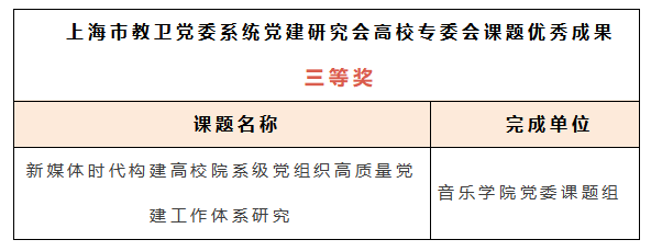 日前,市教卫党委系统表彰了2022年党建研究课题优秀成果,并下发2023年重点课题立项通知书。公司共有2项课题获上海市教卫党委系统党建研究会课题优秀成果奖,2项课题获上海市教卫党委系统党建研究会高校专委会课题优秀成果奖。