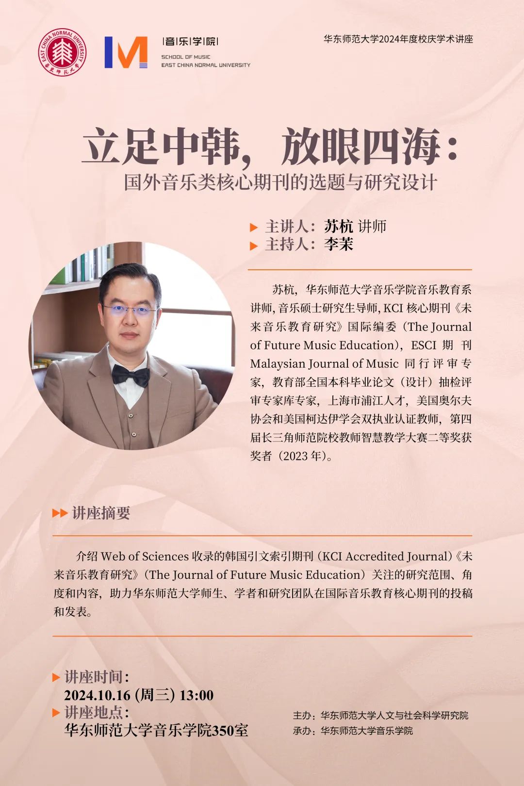 10月16日校庆学术讲座预告 | 苏杭:立足中韩,放眼四海《国外音乐类核心期刊的选题与研究设计》