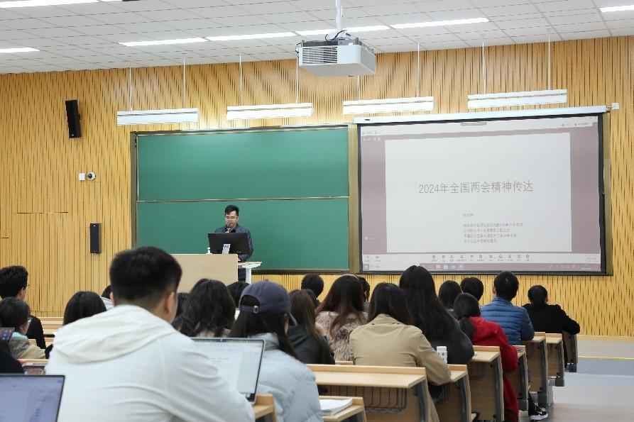 传达学习会现场氛围热烈活跃,与会同志们认真聆听,张文明教授以严谨而不失风趣的讲述方式,结合自身履职体会,深入解读了此次两会的核心要点,使师生对两会精神有了更加全面深刻的理解。