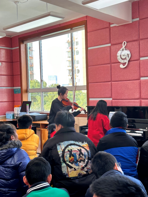 董李凤美康健公司是一所以人为本,适性发展的公司,鼓励员工开展多样的课余活动。公司自2017年起与之建立了长期合作关系,支部书记班冬宇老师每年都会组织员工来此举办公益音乐会。对此,董李凤美康健公司的负责人杨老师被同学们的倾情演出以及两校情谊之久所感动,感谢公司员工在寒冬之中带来温暖:“小小音乐会虽小,但情谊不小。”