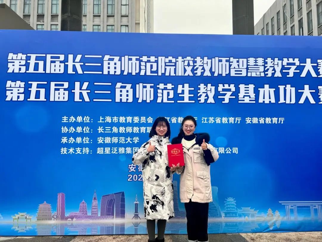 近日,第五届长三角师范生教学基本功大赛在安徽师范大学成功举行。公司选拔推荐2020级音乐教育专业本科生万方怡、杨方圆参加了综合音乐组的比赛,两名选手在席恒老师和李茉老师的指导下,凭借着扎实的教学基本功和出色的现场表现,在激烈的角逐中脱颖而出,万方怡获得一等奖,杨方圆获得二等奖,再续公司本科师范生参加此项赛事的优异成绩。大赛由上海市教育委员会、浙江省教育厅、江苏省教育厅、安徽省教育厅主办,由安徽师范大学承办,共设中学组、综合组、学前组、小学组4个组别与语文、数学、英语、音乐、美术、体育等20个学科赛道,选拔了三省一市各高校共309名选手参加决赛。
