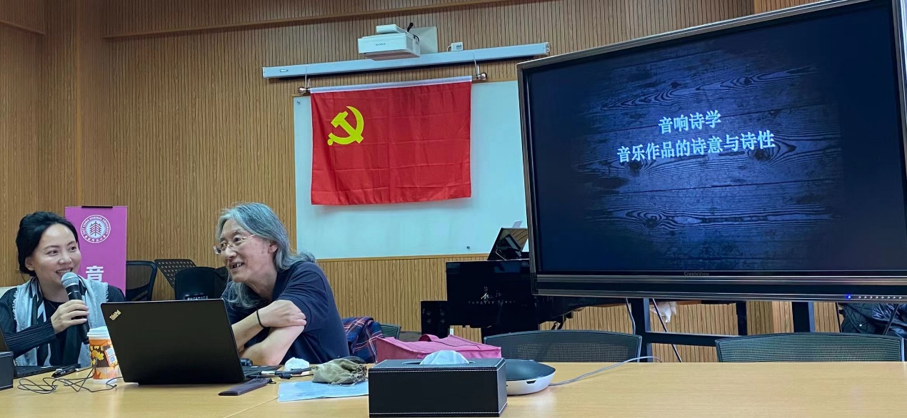 基于音响结构的诗意存在,韩教授又提出了新的概念,之所以是的声音存在。对于这个类哲学问题,韩教授认为,这是由音响实体深度引发而来的音乐本体问题,即音乐之所以是的那个声音存在。韩教授认为,音响结构的形式自身,还有一种之所以是的形式语言。因此,韩教授认为在无数个声音结构当中,始终不变的之所以是的那个声音结构必将终极呈现。因此,韩教授再以《特里斯坦与伊索尔德》前奏曲中的前两个主导动机为例,来阐述这个问题。首先,特里斯坦和弦作为一个变和弦,无论以哪一种和弦属性定位,其音响效果都会非常普通,而和弦一旦产生变异,那种置于多向半音驱动语境中间类似阻碍进程持续被突进的结构性直觉以及由此引发者,都洋溢着扩张性推力的涌动与弥漫于肿胀性搅力的蠕动。其次,特里斯坦和弦无论作为哪一种和弦属性定位,如果回到原位和弦,其音程距离都相对较为狭窄而缺乏张力,但在歌剧前奏曲当中的排列方式,包含了多重增音程的关系所带来的极度张力,以及在音程距离拓展之后能提供更为富裕的声部线条的活动空间。再者,从和声意义上,特里斯坦和弦中的重属音b也可以被看作是一种持续的属准备。因此,韩教授认为,和声的功能性扩张、色彩性铺张这种充满诗意的戏剧表现力与极具诗性的戏剧结构力是确立瓦格纳成全与圆满整体艺术作品的观念,并合式(合乎形式)彰显其音乐戏剧自称音响的重要依据——即一种之所以是的声音存在。基于上述三个问题的讨论,韩教授回到了他讲座的标题,音响诗学:音乐作品音响结构的诗意与诗性。他认为这一研究应当面对充满诗意的音乐,去无尽探寻自以为是的声音呈现;面对诗性十足的音乐,去不息追询之所以是的声音存在。在讲座的最后环节,韩锺恩教授与yl23455永利师生进一步围绕“音乐作品音响结构的诗意与诗性”话题展开热烈讨论,全场师生受益颇多。
