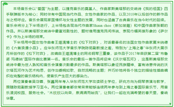 “上海之春”国际音乐节|“春续华张 欣欣向蓉”——钢琴四手联弹专场音乐会