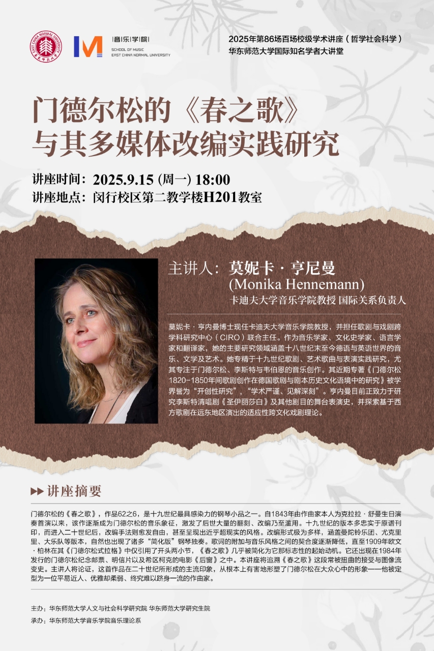 9月15日讲座预告 | 门德尔松的《春之歌》与其多媒体改编实践研究(主讲人:莫妮卡·亨尼曼)